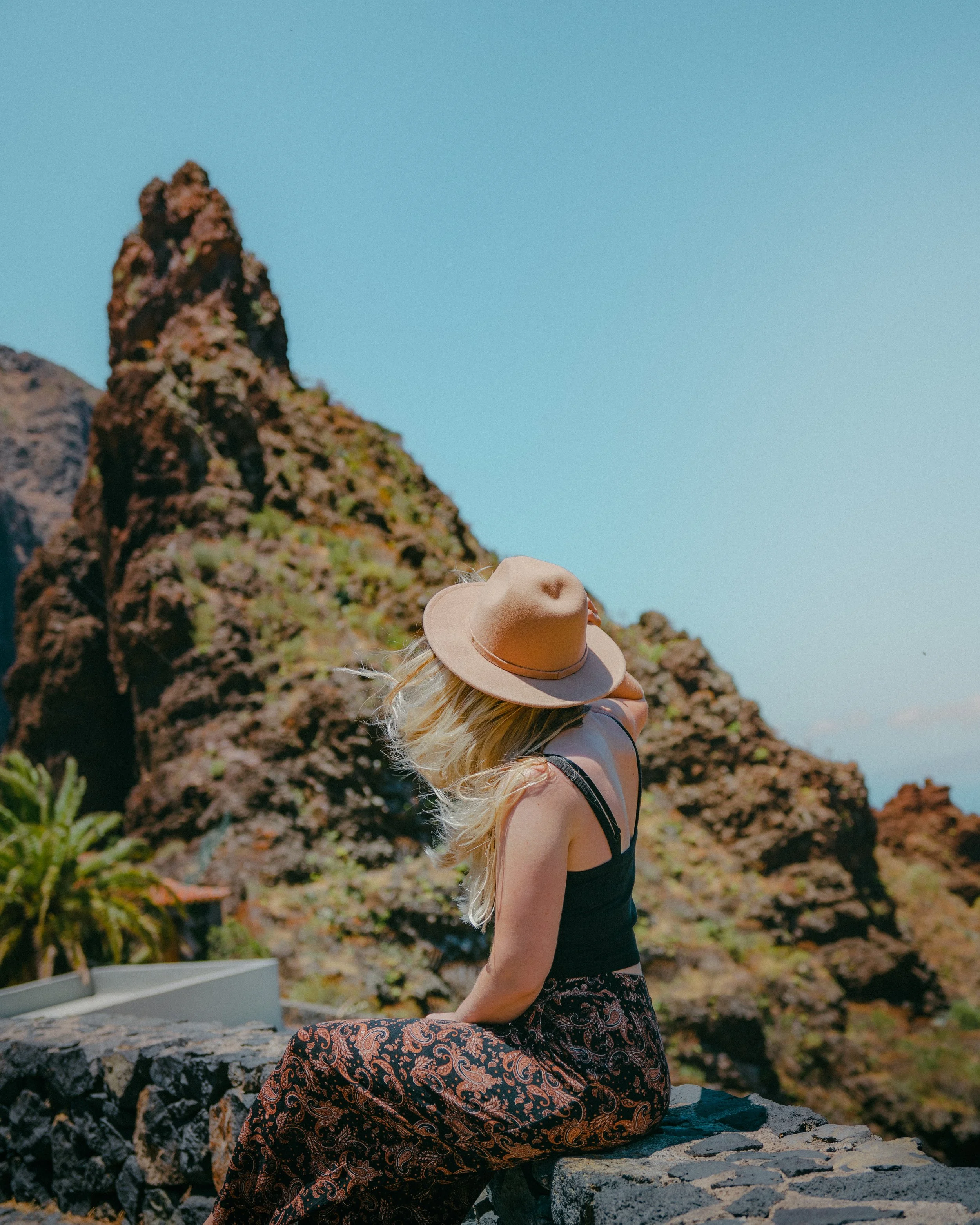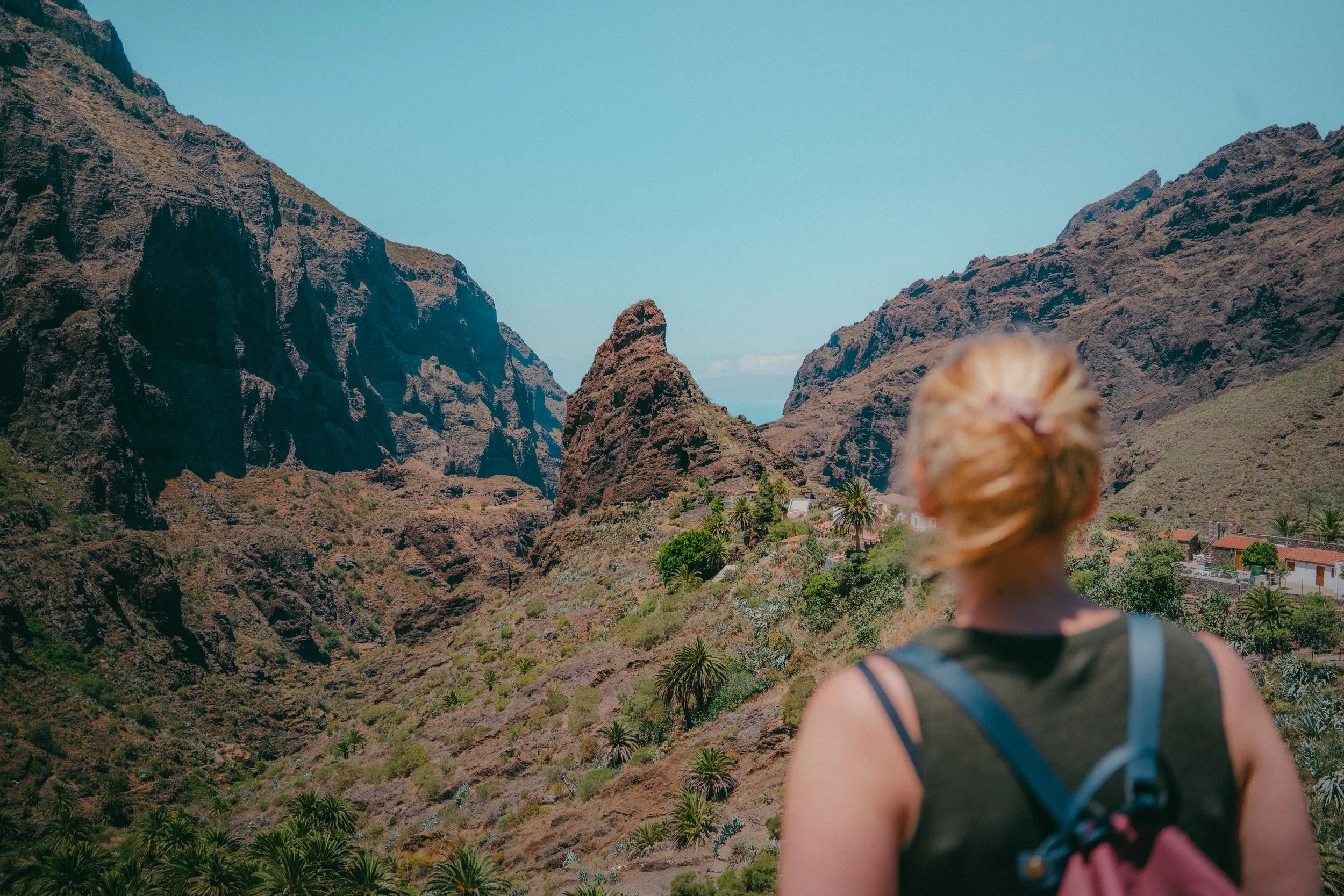 Masca is a beautiful small village located in the middle of the Masca Valley, and features rugged terrain, steep cliffs and beautiful greenery. It’s located in the northwest part of Tenerife and it’s a popular destination for hikers, nature lovers, and anyone seeking a break from the busy tourist area in the south. The trip down to Masca is interesting, to say the least. The sharp and winding road down to the village is a real nightmare for people with the same Dutch driving skills as we do, so we took a taxi down to the village. You can walk around the village, explore the area and have a drink at one of the restaurants there. You can also do a hike from the village through the Masca Gorge all the way down to the ocean. The hike can only be done together with a guide, which due to high demand, must be booked well in advance. Amelieke and I only came to Masca for a short visit, and we had to wait for 2 hours before the next bus could bring us to the top again. We then decided to hitch-hike back up. Some friendly German people took us in and brought us safe to the top again.